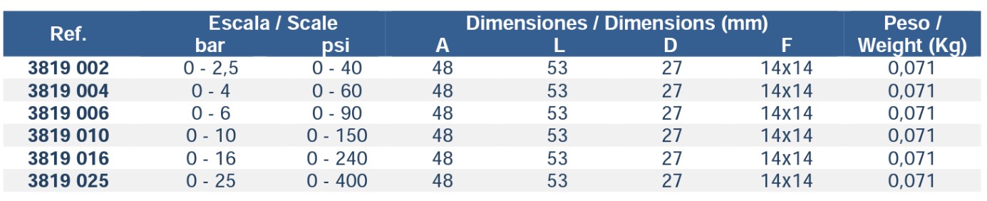 Manometru 2.5-4-6-10-16 bar Genebre