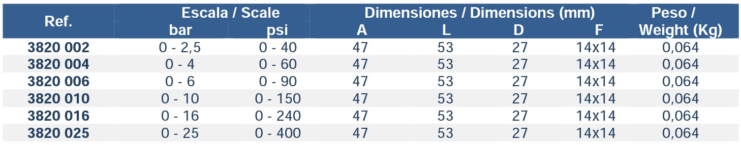 Характеристики Манометр 6 БАР Genebre 1/4 3820 006