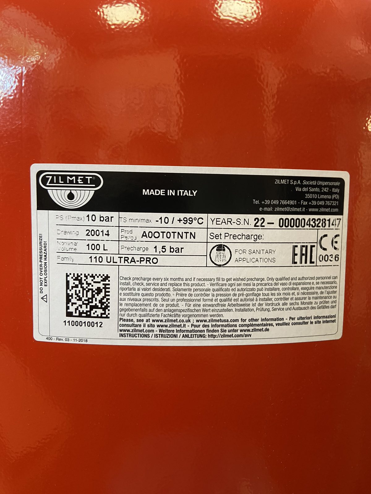 Отзывы о Расширительный бак Ultra-Pro 100L 1" G (Red) вертикальный Zilmet Код-1100010012