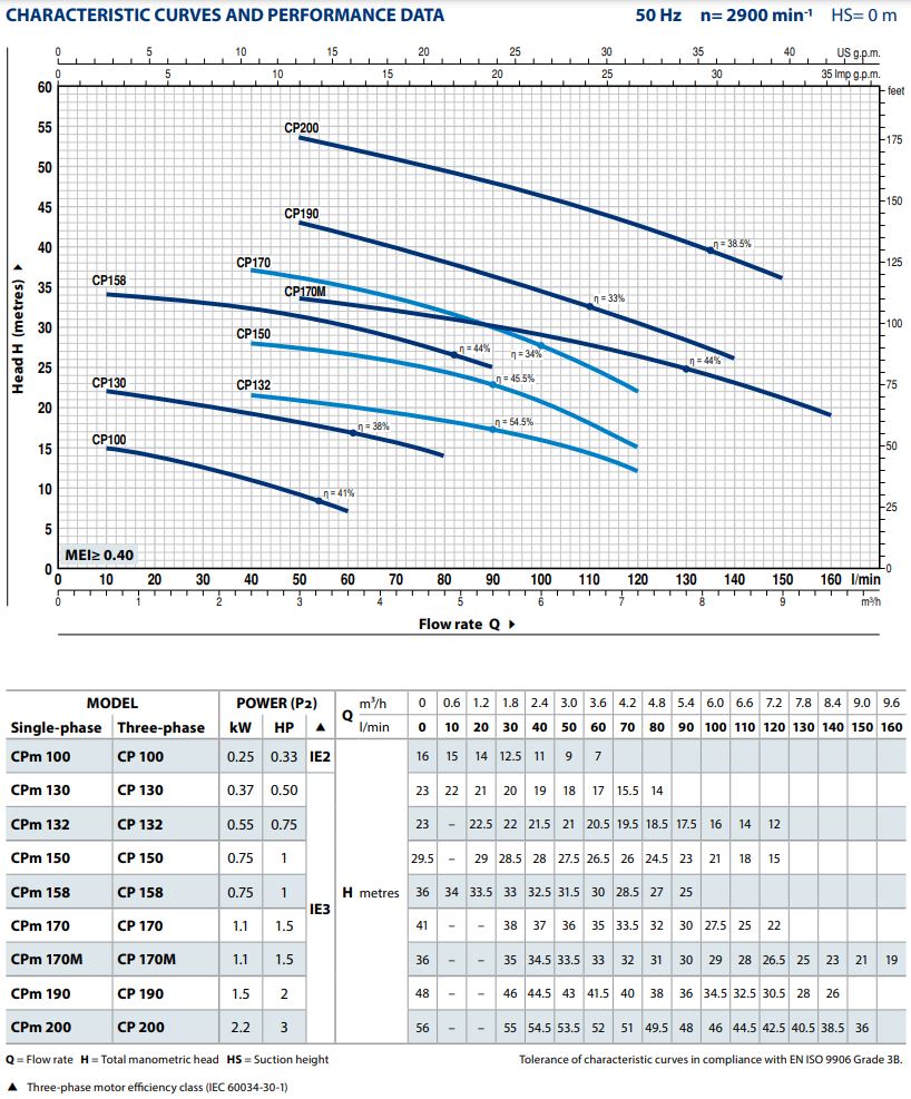 Caracteristici Центробежный насос Pedrollo CP 150 0,75 kW 44CIT160A