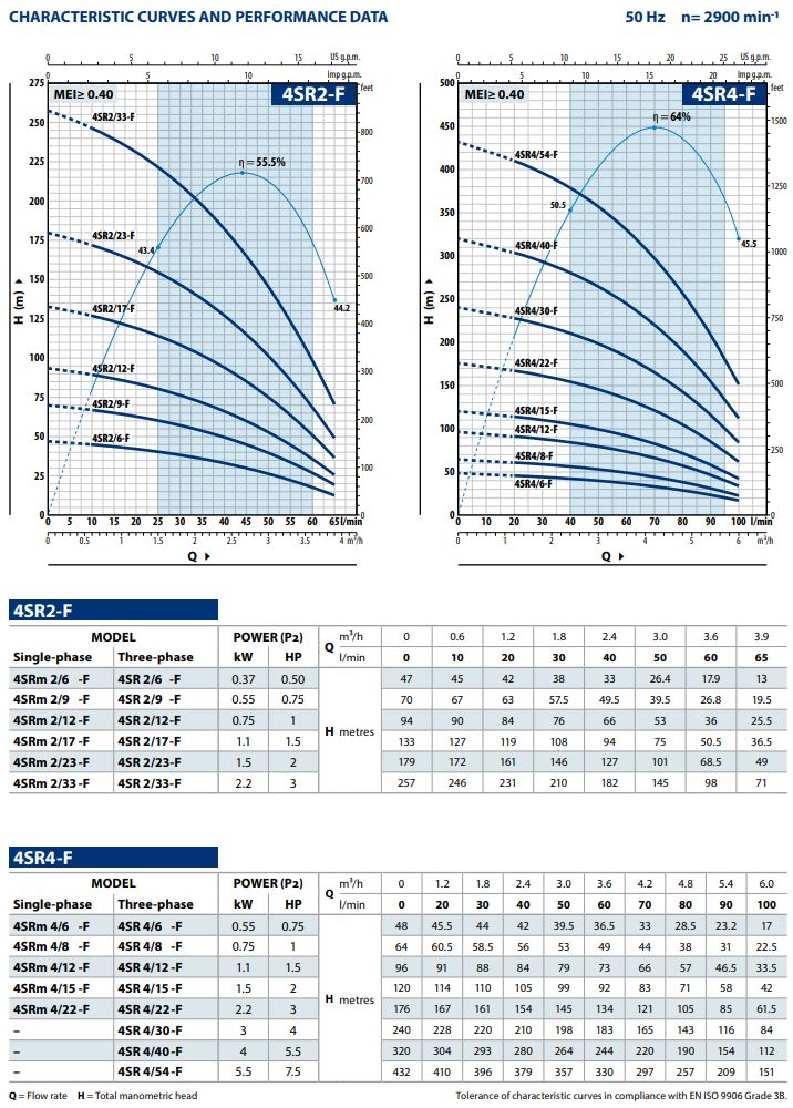 Насосы для скважины данной серии рекомендуются для перекачки чистой воды или жидких тел содержащих не более 150 г/м3 песка. Благодаря высокому кпд и их надежности, эти насосы применяются в быту, в промышленности, для автоматической подачи воды совместно с автоматическими агрегатами поддержания давления, для орошения огородов и садов, для моечного оборудования, для увеличения напора и в системах противопожарной безопасности и т.д. Эксплуатация насосов серии 4SR12 возможна внутри колодцев диаметром не менее 4" (100 мм). Электронасос опускается в колодец посредством нагнетательного трубопровода до глубины, на которой происходит его полное погружение (мин. 50 см от верхнего уровня и не менее 1 метра до дна колодца), даже в процессе функционирования, при котором наблюдается снижение уровня жидкости в колодце.