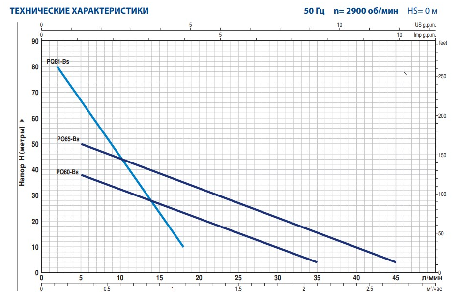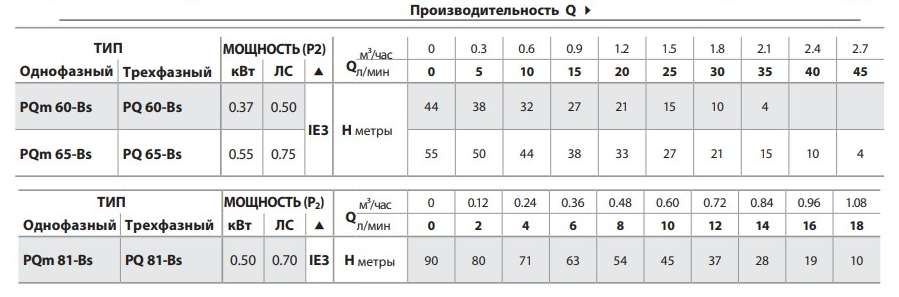 Domeniile pompelor din seria PQ-BS Pedrollo: