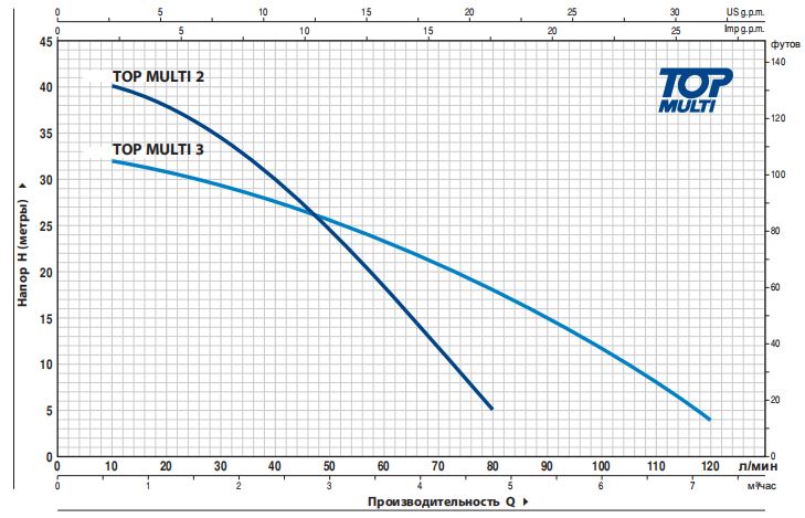 ХАРАКТЕРИСТИКИ НАСОСА MULTI TOP ОТ PEDROLLO